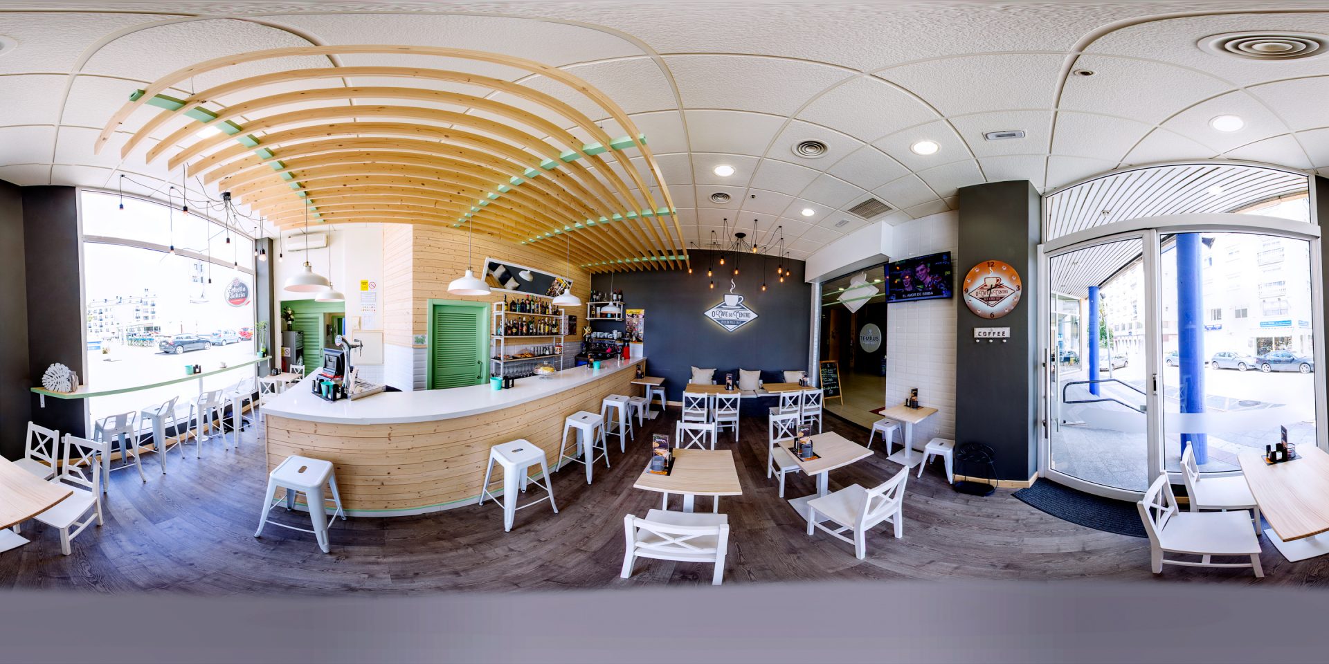 Reforma integral de cafetería en el CC Narón . Este proyecto ha sido muy complejo por su tamaño reducido, nuestros clientes se dejaron aconsejar en todo momento y gracias a esto y una buena atención rompimos la mala racha de un local que no funcionaba. Creamos una cafetería de tonos muy frescos y divertidos, buscando la calidez de la madera natural y potenciando la entrada de luz de su fachada. Plazo de ejecución 1 mes